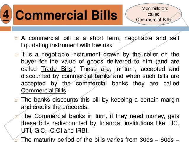 A Commercial Bill is a short term negotiable, self-liquidating instrument which is used to finance the working capital requirements of firms.