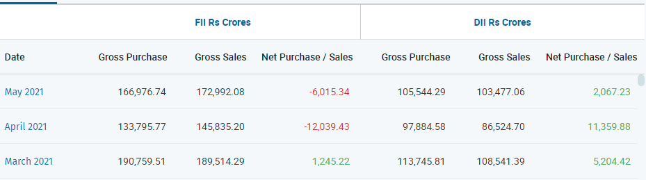 Activities of FIIs (Foreign Institute Investors) and DIIs (Domestic Institute Investors)